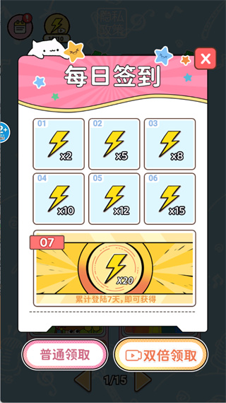 3、每日簽到還能獲得額外的體力,這是闖關(guān)消耗的必需品;
