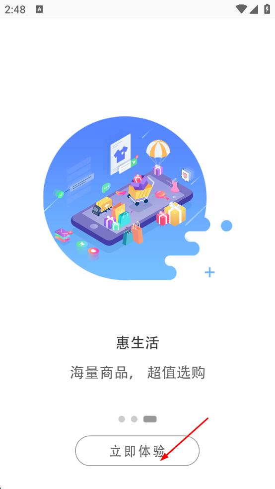 2、若有“惠生活”引導(dǎo)頁(yè),點(diǎn)擊“立即體驗(yàn)”,進(jìn)入相關(guān)生活服務(wù)板塊,瀏覽海量商品信息 。