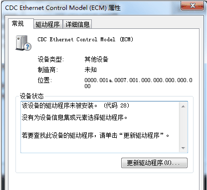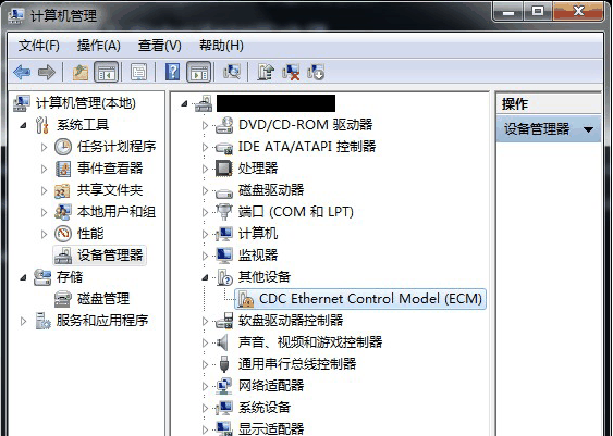 4、雙擊右側(cè)列表中“其他設(shè)備”下的CDC Ethernet Control Model (ECM)
