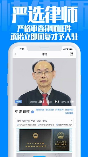 快律師app創(chuàng)立法律咨詢行業(yè)律師極速應(yīng)答新模式,聚集了全國各地的精英律師為用戶提供在線法律咨詢服務(wù)。用戶下單后在5秒內(nèi)即可與律師進(jìn)行有效溝通,若60秒內(nèi)律師未開始應(yīng)答,平臺承諾立即為用戶退款,解決了律師水平參差不齊、咨詢費(fèi)用較高、地域受限等法律咨詢的服務(wù)痛點(diǎn),旨在打造互聯(lián)網(wǎng)法律咨詢極速響應(yīng)新標(biāo)桿。