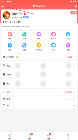 2、進入我的頁面內(nèi),點擊左上角設(shè)置的按鈕。