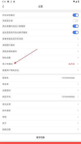 3、進入設(shè)置的界面內(nèi),點擊下方青少年模式的按鈕。