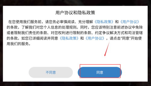 1、首次啟動需仔細(xì)閱讀用戶協(xié)議,確認(rèn)后點(diǎn)擊同意按鈕即可進(jìn)入游戲主界面。