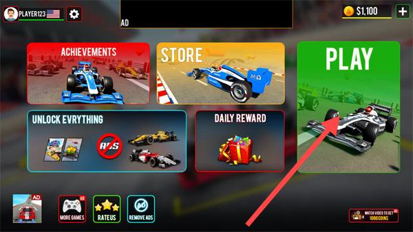 1、點擊【play】進(jìn)入游戲選擇賽車。