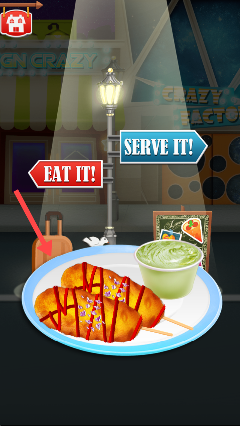 3、出現(xiàn)【SERVE IT!】【EAT IT!】時(shí),按需點(diǎn)擊,選擇上菜或享用,推進(jìn)游戲流程。
