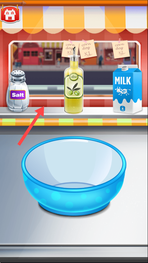 2、按提示操作,如拖動(dòng)玉米熱狗,完成食物初步制作步驟,專注細(xì)節(jié)確保正確。