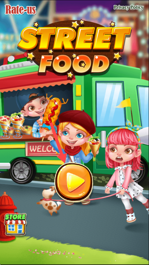 1、進(jìn)入 “STREET FOOD” 游戲界面,點(diǎn)擊中間播放按鈕,開啟街頭美食制作體驗(yàn)。