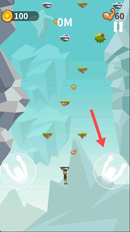 3、點(diǎn)擊屏幕兩側(cè)按鈕控制角色攀爬,收集【星星】等道具,留意【體力60】數(shù)值,確保攀登順利進(jìn)行。
