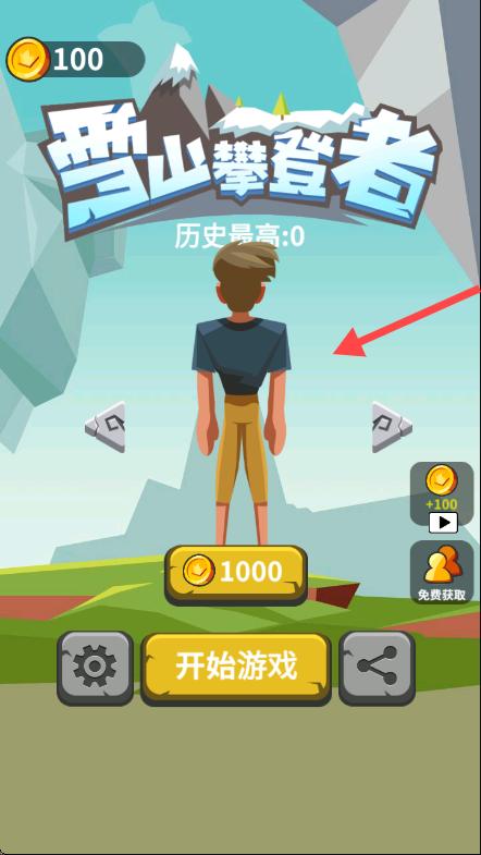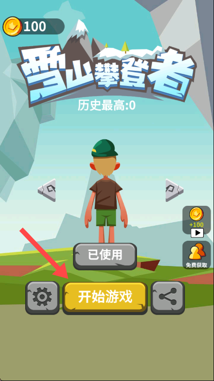 1、游戲界面顯示【雪山攀登者】,點(diǎn)擊【開(kāi)始游戲】按鈕進(jìn)入游戲,開(kāi)啟攀登之旅。