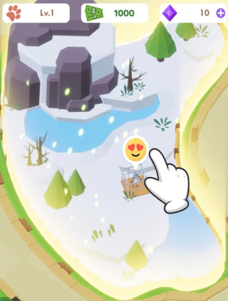 3、畫面中帶愛心表情的圖標(biāo),引導(dǎo)玩家進(jìn)行互動(dòng),點(diǎn)擊收集或觸發(fā)特定事件,這樣的設(shè)計(jì)增添了游戲的趣味性與互動(dòng)性。