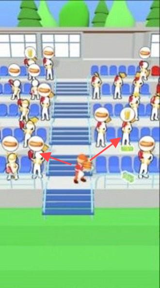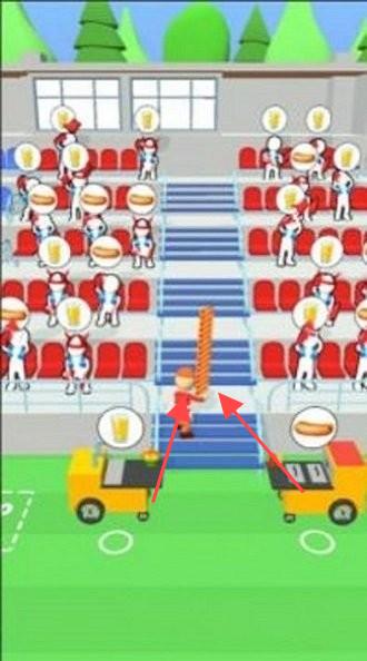 1、玩家操控角色在體育場觀眾席區(qū)域移動,為觀眾提供服務或收集物品。