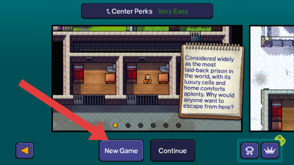 2、畫面中【NewGame】按鈕用于開始新游戲,游戲為像素風格,玩家需在監(jiān)獄場景中通過收集物品、制作工具、躲避守衛(wèi)等方式策劃并執(zhí)行逃脫計劃。