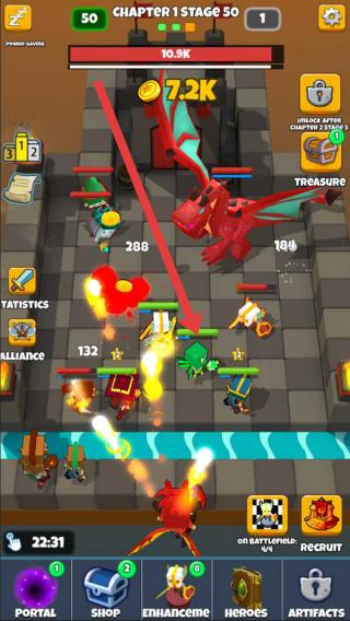 3、操控英雄團(tuán)隊(duì)精準(zhǔn)攻擊并擊倒敵方單位,每一次成功擊殺均可獲取金幣用于陣容強(qiáng)化。