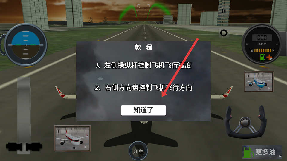 2、慢慢推動(dòng)左側(cè)推桿,讓飛機(jī)逐漸加速,然后右手控制方向盤(pán)抬升飛機(jī)。