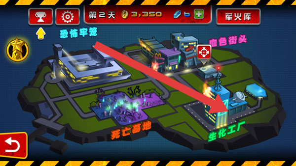 3、在地圖界面,按照箭頭指引,選擇【生化工廠】等地點(diǎn),前往相應(yīng)場(chǎng)景執(zhí)行任務(wù),推動(dòng)游戲進(jìn)程。