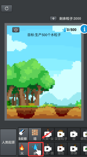 2、根據(jù)游戲提示,點(diǎn)擊水滴子生產(chǎn)。
