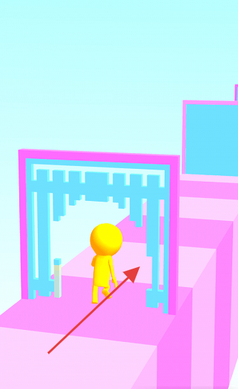 2、前進(jìn)過程中,引導(dǎo)小人穿過不同形狀的門框,可能存在通過特定形狀門框可獲得增益或推進(jìn)游戲的設(shè)定。