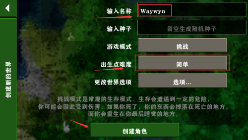 3、這里要輸入你的名字,出生地選擇簡單,然后創(chuàng)建角色。