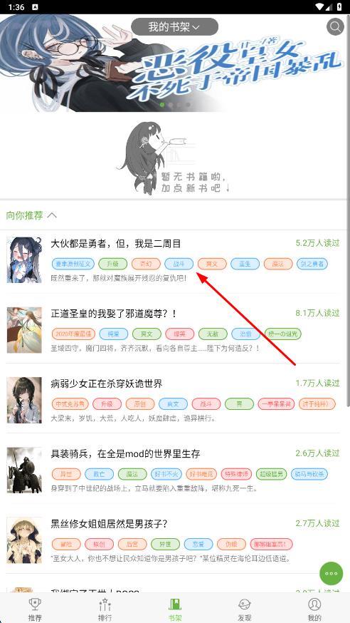 1、點(diǎn)擊進(jìn)入游戲,滑動屏幕查看書架,在書名的下方有書籍的類型,玩家可以挑選心儀的書目。