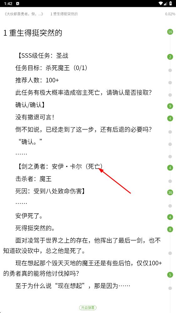 3、滑動屏幕開始閱讀,也可以點(diǎn)擊下方【開啟彈幕】開啟網(wǎng)友們在閱讀相同篇目時(shí)的感受。