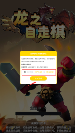 1、打開(kāi)游戲后,點(diǎn)擊勾選然后進(jìn)入游戲。