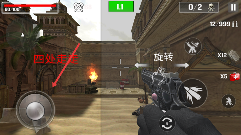 2、左手畫圈找出敵人,小地圖顯示位置,右手開鏡瞄準(zhǔn)隨時(shí)開火。