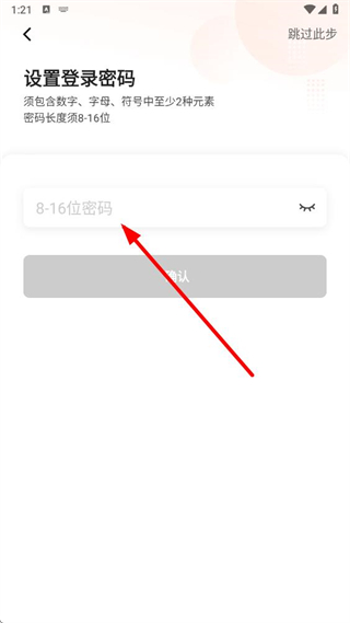 3、在設(shè)置登錄密碼頁面,填寫密碼,點(diǎn)擊確認(rèn)完成賬號(hào)注冊(cè)。