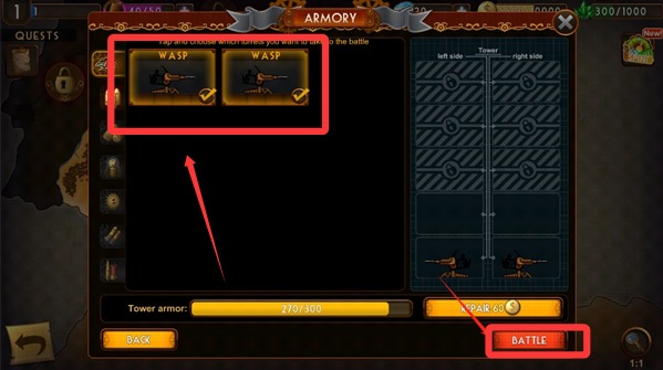 3、布置好你的炮臺(tái),點(diǎn)擊battle就可以開(kāi)始戰(zhàn)斗了。