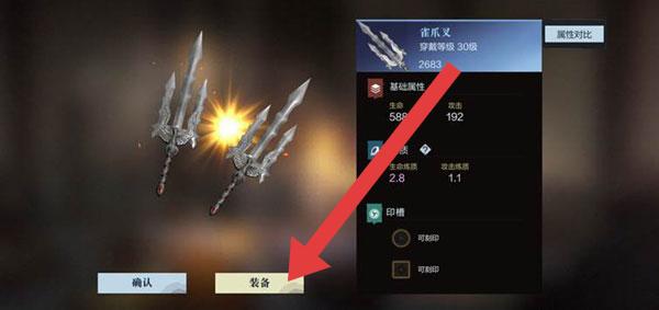 2、獲得新武器(如擊爪叉)后,點擊【裝備】按鈕,為角色穿戴該武器,提升角色戰(zhàn)力,增強戰(zhàn)斗屬性。