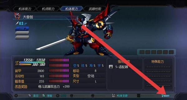 2、在機體能力界面,查看“大曾伽”等機體的各項屬性(如裝甲、運動性等),點擊右下角【變更】按鈕。