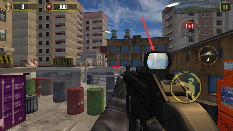 3、注意瞄準(zhǔn)鏡動態(tài),放大目標(biāo)實(shí)現(xiàn)一千米外爆頭,開槍前先找掩體躲好。