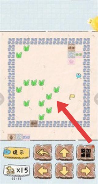 1、畫面上方方形區(qū)域內(nèi)有綠植等元素,是場景地圖,下方有多個功能按鈕,提示按鈕用于獲取游戲提示,玩家需操控游戲元素抵達此處完成關卡任務。