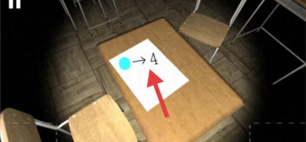 2、查看課桌上箭頭所指的提示信息“→4”,獲取解謎線索。