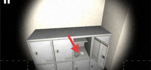 3、按箭頭指向,查看儲物柜上的標記“6←”,進一步收集線索推進游戲。