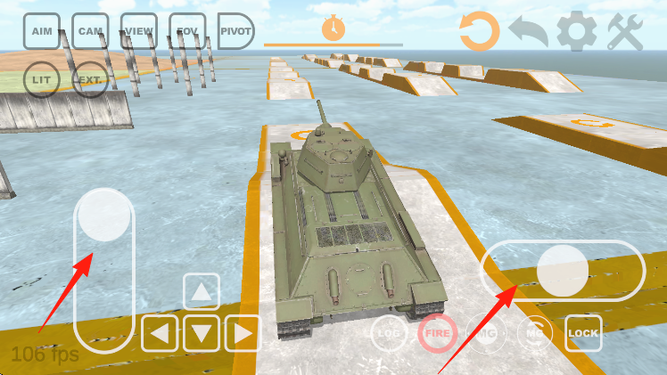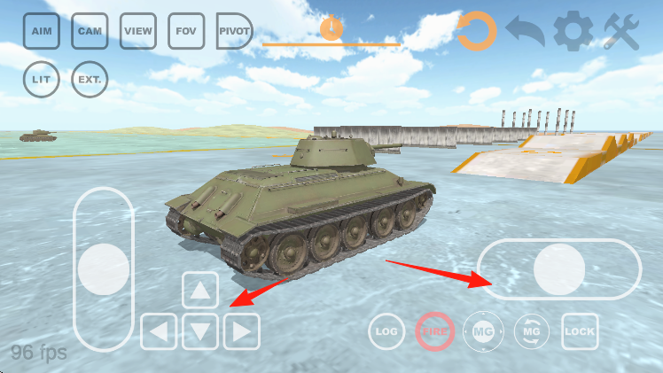 1、進(jìn)入車庫選擇二戰(zhàn)虎式坦克,滑動虛擬搖桿駛?cè)肷衬?xùn)練場,履帶碾壓碎石揚(yáng)起沙塵,轉(zhuǎn)動炮塔瞄準(zhǔn)百米外靶標(biāo),感受主炮射擊時(shí)的后坐力反饋。