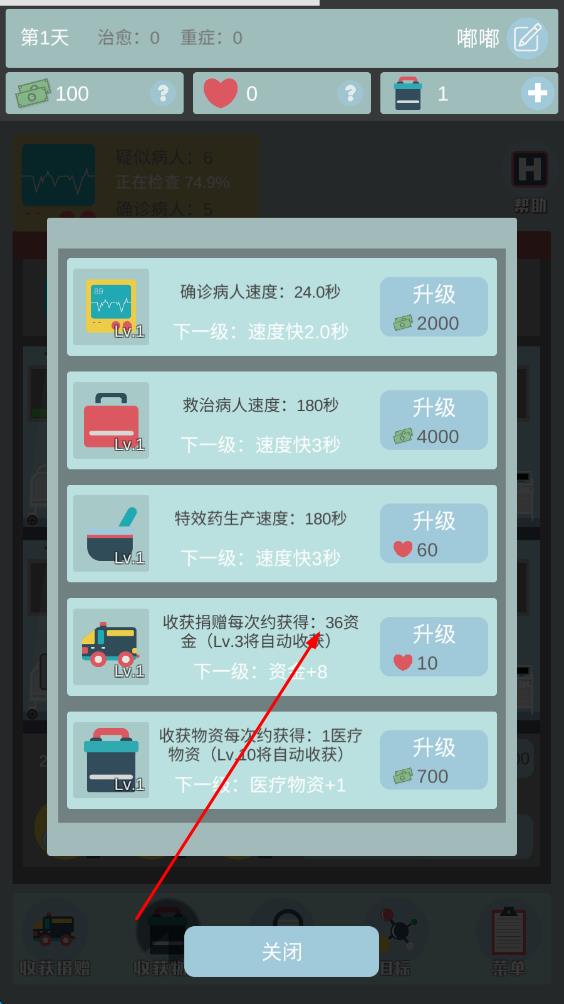 2、打開人才界面招募醫(yī)師護(hù)士,根據(jù)人員資質(zhì)分配至對應(yīng)科室,同時使用金幣升級B超儀、心電圖機(jī)等設(shè)備提升診療效率。