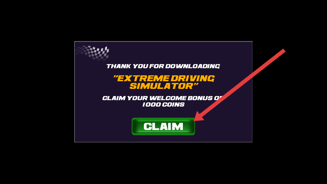1、進入極限超車模擬器的游戲后,點擊【CLAIM】領取歡迎獎勵1000金幣,開啟游戲之旅。