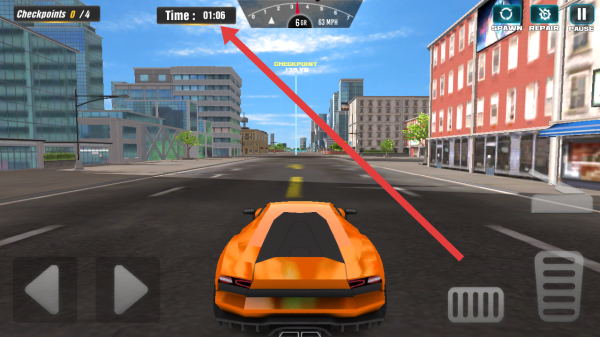 3、需要注意上方時間顯示,在規(guī)定時間內(nèi)駕駛車輛前往checkpoint,完成游戲關卡的任務。