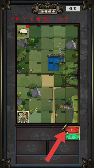 2、呈現(xiàn)了回合制策略對戰(zhàn)場景,包含地圖、角色、回合、時間及行動指令(攻擊、等待)等信息,屬于利用骰子等元素進(jìn)行策略戰(zhàn)斗的環(huán)節(jié)。