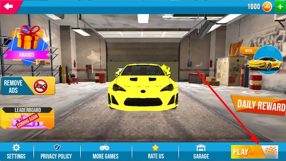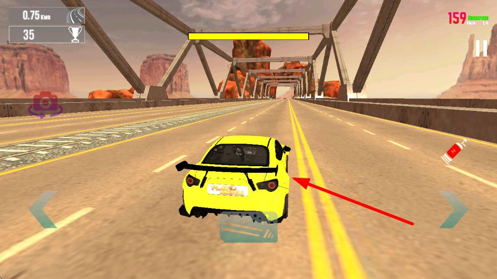 1、進(jìn)入游戲后,點(diǎn)擊“PLAY”進(jìn)入賽道,通過左右虛擬按鍵控制賽車在公路行駛方向,開啟競速之旅。