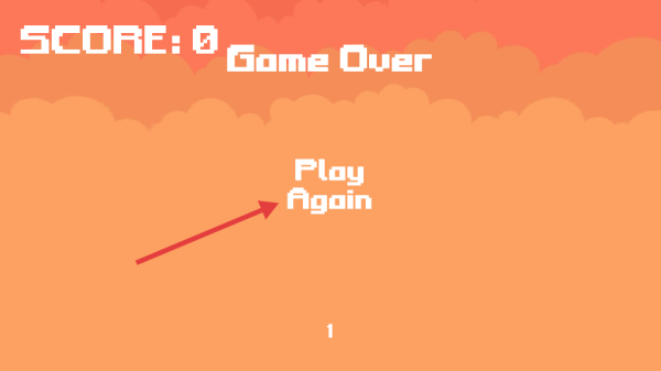 3、游戲結(jié)束界面,顯示【SCORE:0GameOver】,點(diǎn)擊【PlayAgain】重新開始游戲。