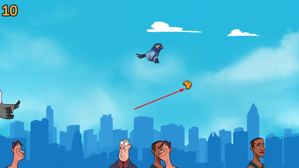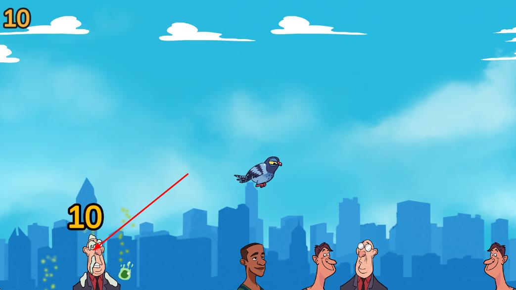 1、進入游戲后滑動屏幕操控鴿子飛行,點擊屏幕發(fā)射糞便攻擊行人、車輛,命中目標積累混亂值。