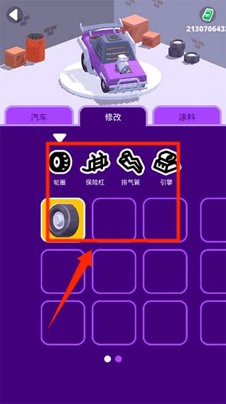 3、進(jìn)入到車(chē)庫(kù)中,這里可以對(duì)車(chē)輛進(jìn)行個(gè)性化改造。