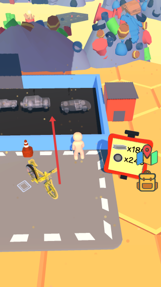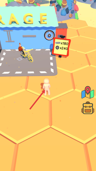 2、在車庫區(qū)域收集黃色自行車等物品,積累零件和硬幣資源。