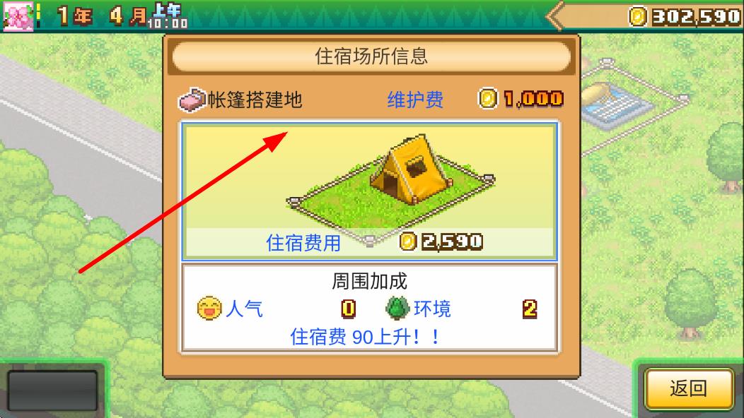 3、積累足夠金幣后,購買周邊土地,擴(kuò)張營地規(guī)模,解鎖新建筑與玩法,如豪華木屋、露天影院等,持續(xù)豐富露營體驗(yàn),打造超具吸引力的露營勝地。
