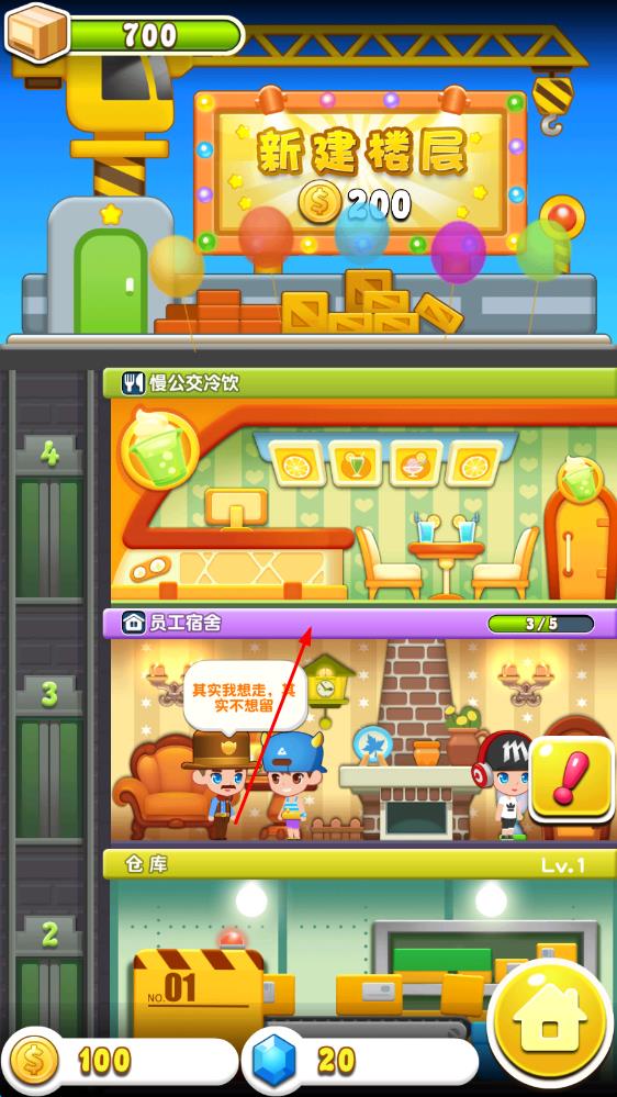 1、樓層建造:從底層開(kāi)始逐層向上蓋樓,選擇建造住宅樓吸引居民入住,或建造商鋪、商城引入商家,通過(guò)完成蓋樓任務(wù)解鎖更高樓層。