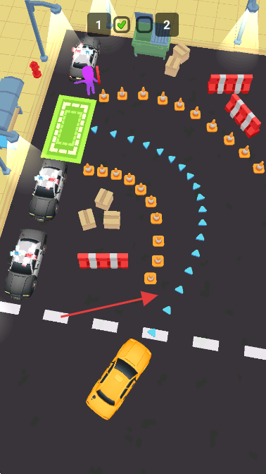 2、復(fù)雜場(chǎng)景中規(guī)劃路線,躲警車與障礙,完成停車任務(wù)。