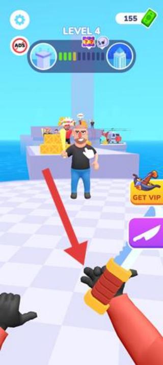 1、單指操控與精準(zhǔn)命中:點(diǎn)擊屏幕投擲飛刀,自動(dòng)瞄準(zhǔn)敵人弱點(diǎn)觸發(fā)暴擊,拋物線軌跡輔助預(yù)判移動(dòng)目標(biāo),支持“拐角折射”“穿墻擊殺”等策略操作。
