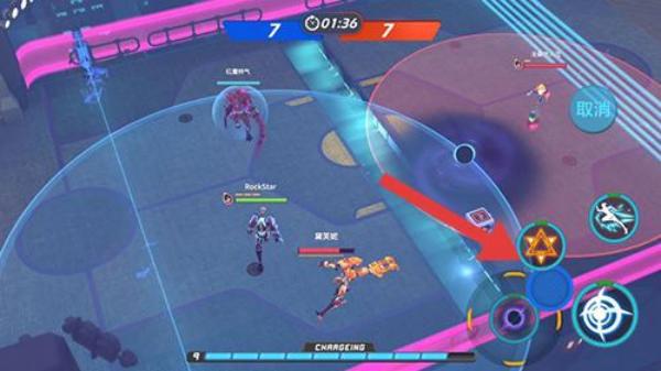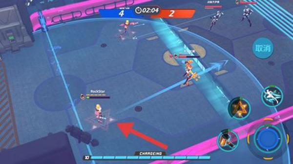 2、操控角色在賽場走位,規(guī)避敵方攻擊,尋找輸出時(shí)機(jī)。