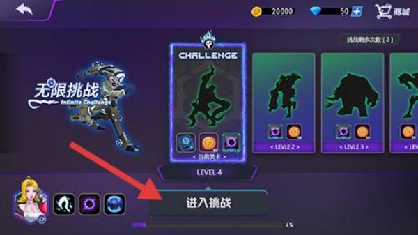 1、點(diǎn)擊“進(jìn)入挑戰(zhàn)”,開啟無限挑戰(zhàn)Level4對戰(zhàn)。